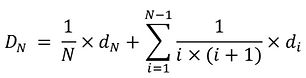 By definition, every year, there is a chance of 1/i to encounter a i-year flood or stronger. For a given year, the expected value of damages resulting from all floods with a return period equal to or lower than N is: