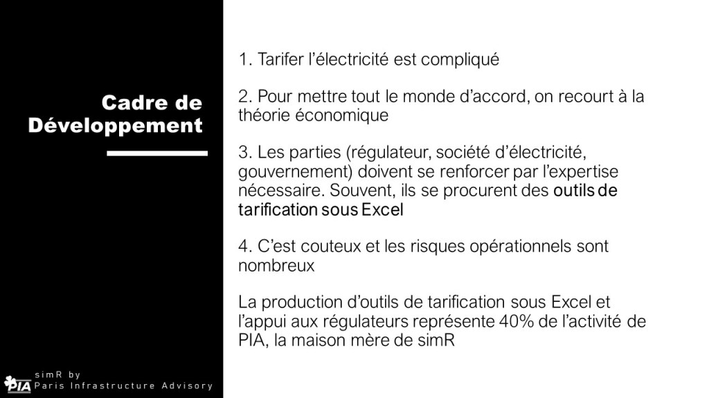 PIA supports energy regulators and utilities set power tariffs. Such services are provided for regulators in Europe, Africa and the Carribean. Building on its strong expertise in this area, PIA is developing a web tool, with the aim to move from the current business model to offer subscription based tariff setting services.